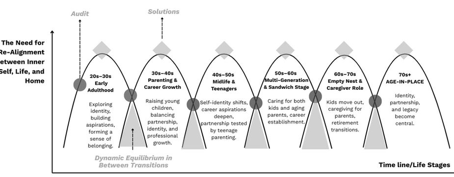 Our vision is to design with time. Form Follows Becoming™ is a holistic interior design system structured around four categories and twenty-four layers of design elements. By integrating systems thinking with life-stage mapping across surface, spatial, sensory, and soul categories, we translate this framework into a design audit and process toolkit—making it tangible, actionable, and directly applicable to creating spaces.
